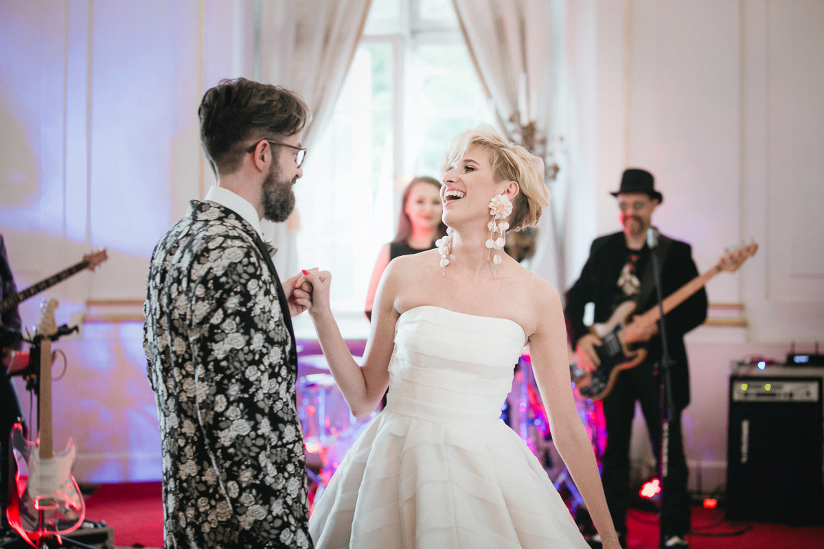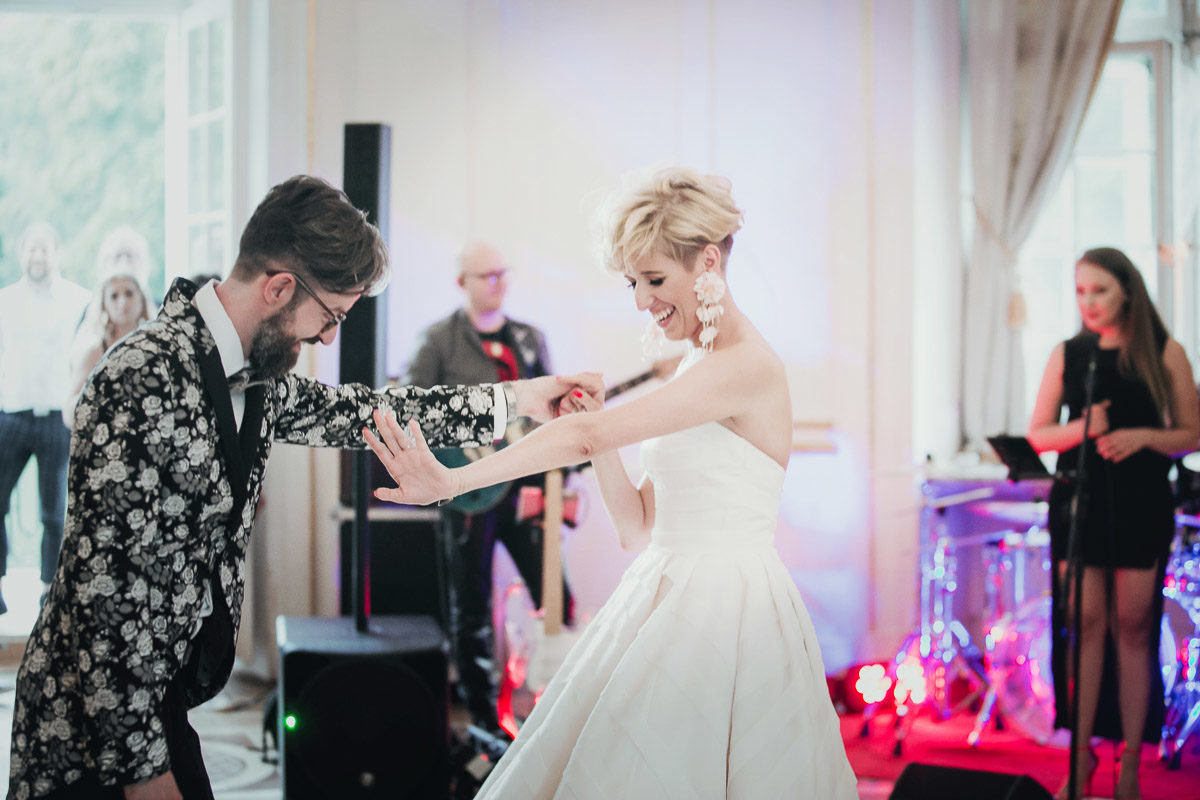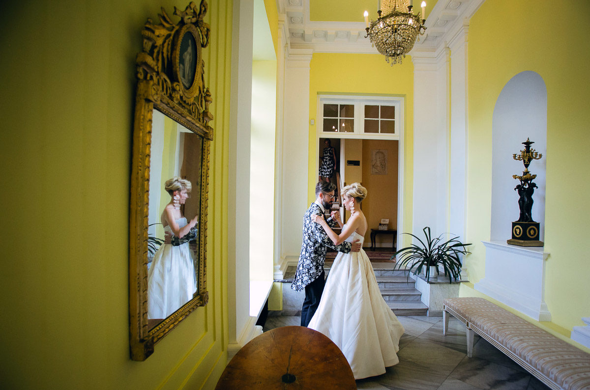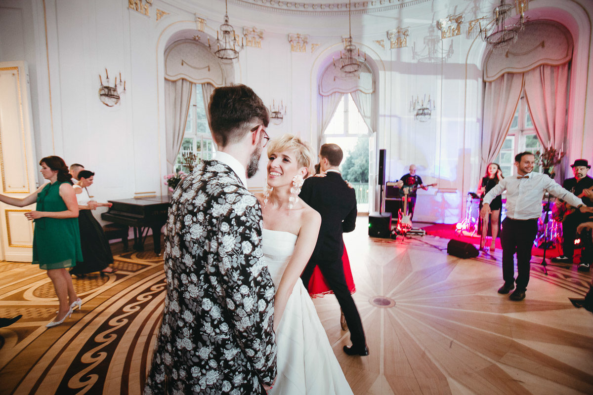 Karolina i Mateusz to jedna z najbardziej niezwykłych i odważnych par, jakie miałem okazję fotografować. Ich ślub i wesele w Pałacu w Jabłonnej był dniem pełnym niezwykłych wrażeń. Poczynając od niebanalnych kreacji pary młodej, a kończąc na stylowych wnętrzach samego pałacu, w którym odbyła się fantastyczna, bezpretensjonalna zabawa.