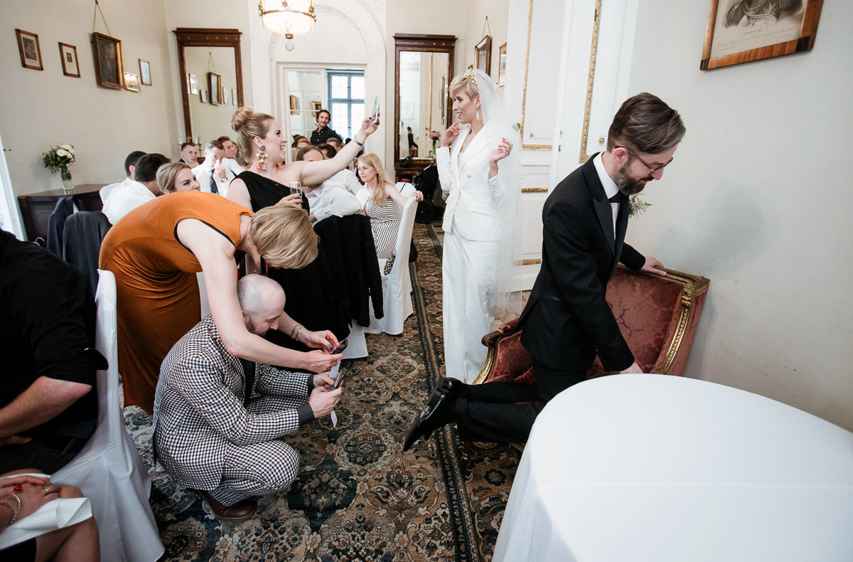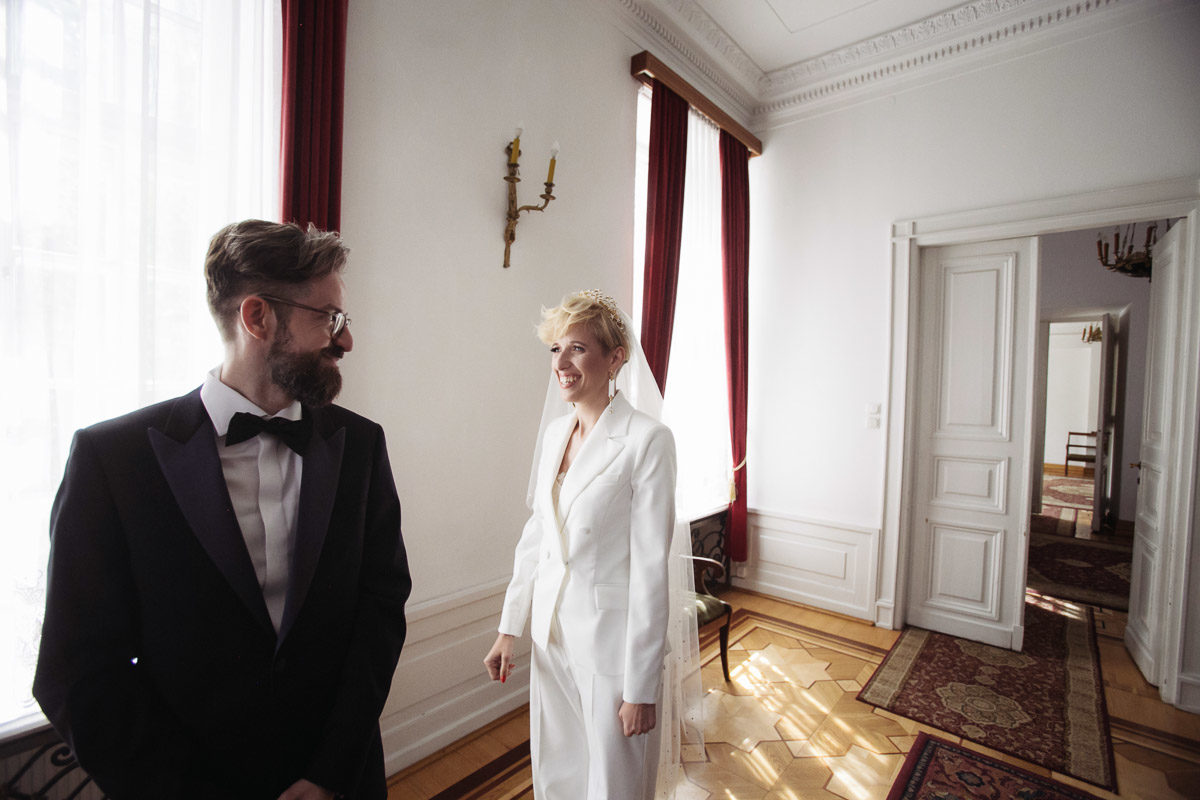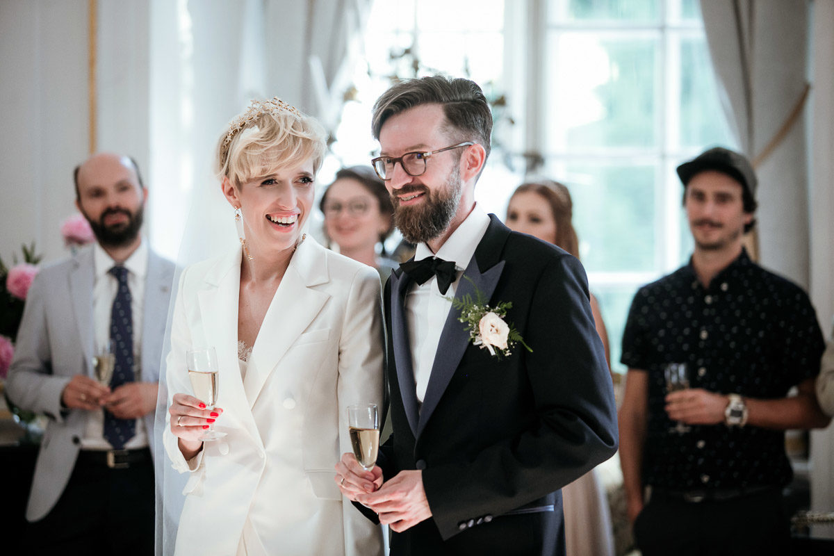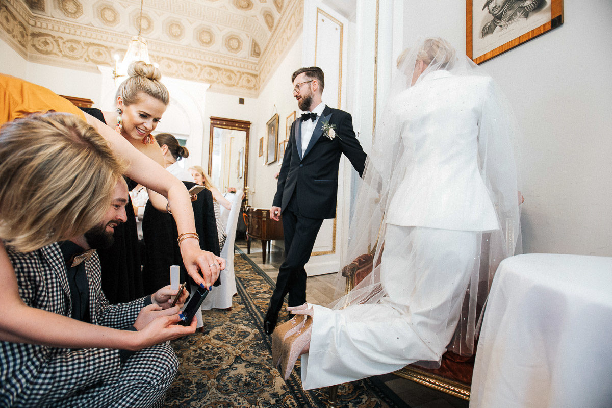 Karolina i Mateusz to jedna z najbardziej niezwykłych i odważnych par, jakie miałem okazję fotografować. Ich ślub i wesele w Pałacu w Jabłonnej był dniem pełnym niezwykłych wrażeń. Poczynając od niebanalnych kreacji pary młodej, a kończąc na stylowych wnętrzach samego pałacu, w którym odbyła się fantastyczna, bezpretensjonalna zabawa.